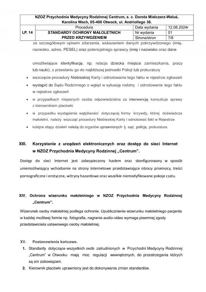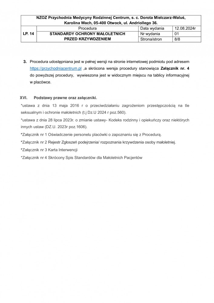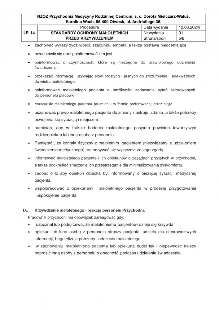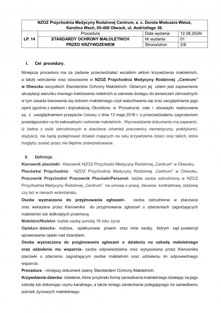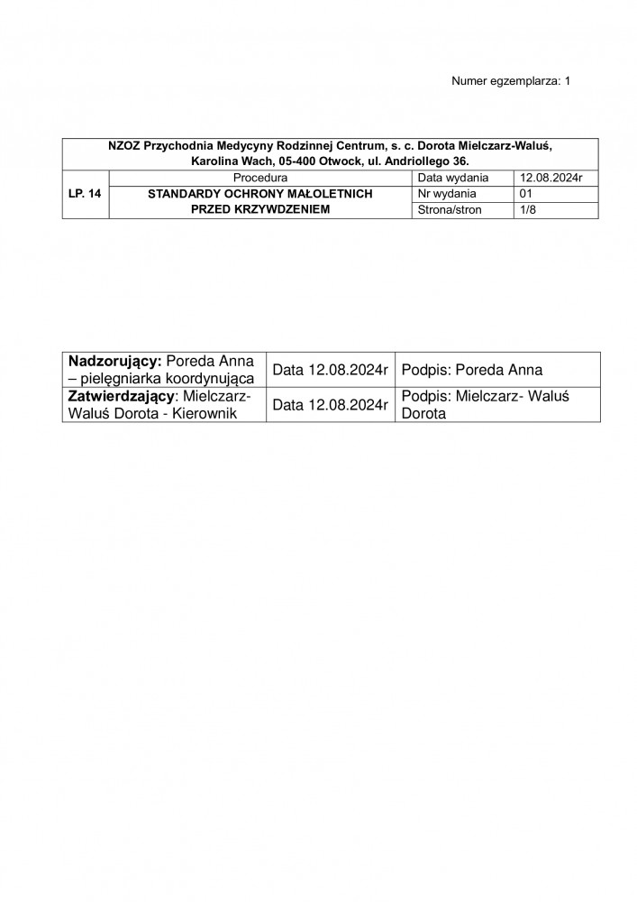 STANDARD OCHRONY OSOBY MAŁOLETNIEJ PRZED KRZYWDZENIEM